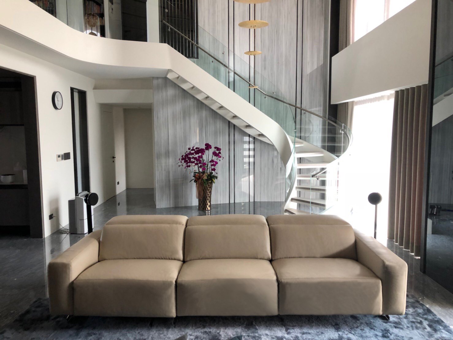 挑高客廳的樓中樓空間,特別將沙發設計配置在房子的視覺中心位置,使整體動線納入一併考量,無論身處家中何處,都能一眼看見中心沙發,使其聚焦,展現義大利品牌工藝之美。沙發每個家庭最不可或缺的重點之一,客廳不但是個需要接待客人談天談事的地方更是一家人聚集相處的地方,那麼怎能缺少一張舒適且充滿話題性的沙發呢!?