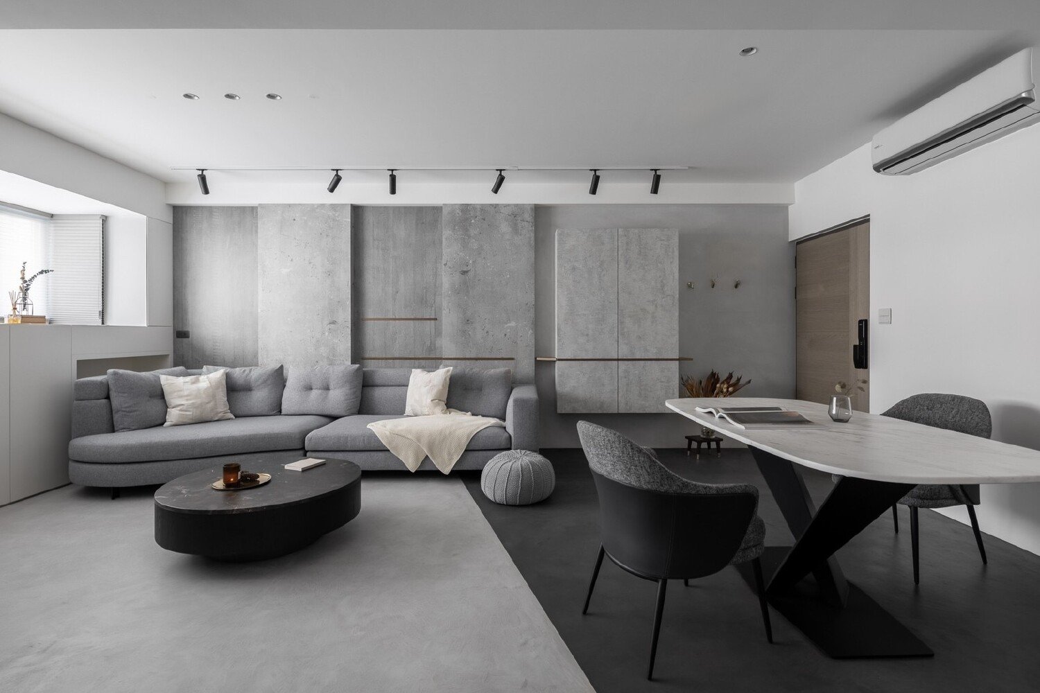 延續設計師擅長的灰階色系風格,而對比更加強烈。